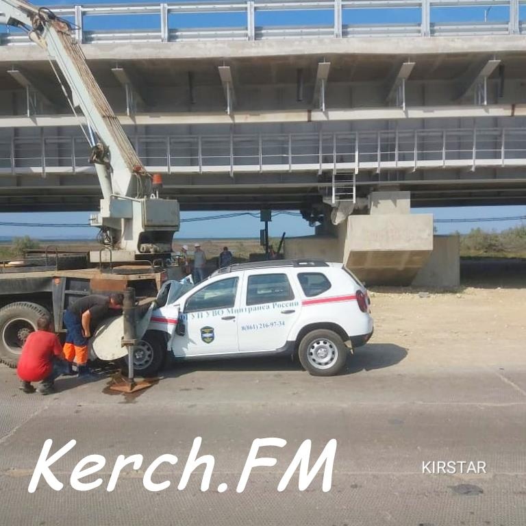 На стройплощадке Крымского моста 14 июля произошла авария. Машина Минтранса влетела под автокран. Об этом сообщают очевидцы в соцсети, - передает Керчь.ФМ