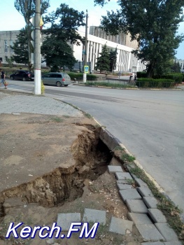 В Керчи, на пешеходной дорожке, в районе кольца на «Институте» вели работы по замене магистрального водовода. После себя территорию так никто и не благоустроил. А после сильного дождя здесь и вовсе образовалась глубокая яма, - передает Керчь.ФМ
