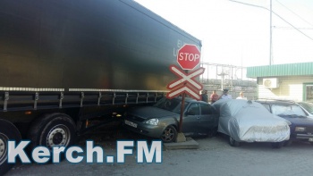 В порту Кавказ на ж/д переезде столкнулись железнодорожный состав и фура, которая выезжала с парома. Кроме того, в этот состав влетела легковушка. Об этом Керчь.ФМ сообщили постоянные читатели.
