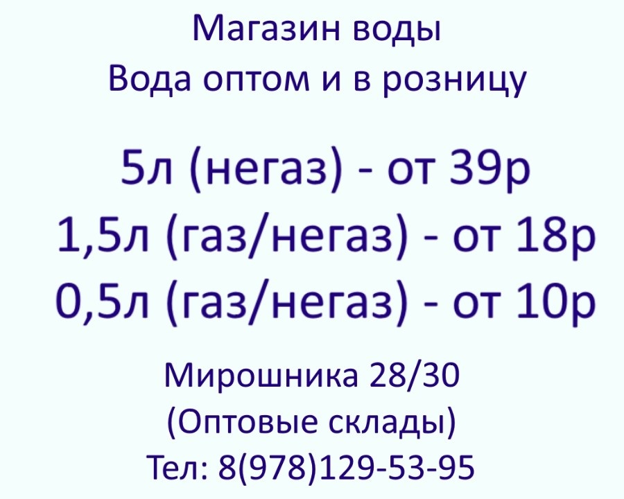 Магазин воды проводит распродажу питьевой воды от 0, 5 до 19л оптом и в розницу!