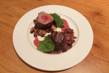 - вырезка из телятины с пряной фасолью под гранатовым соусом (при заказе данного блюда действует акция - напиток в подарок);