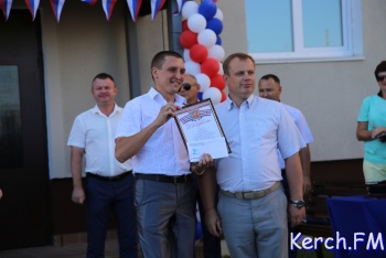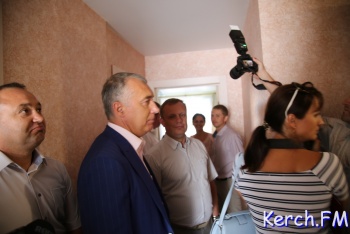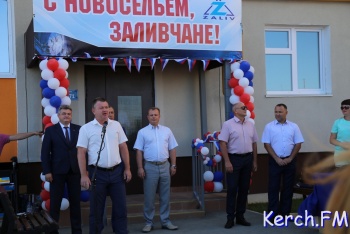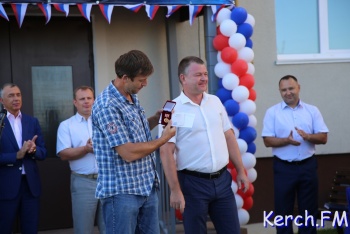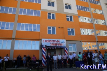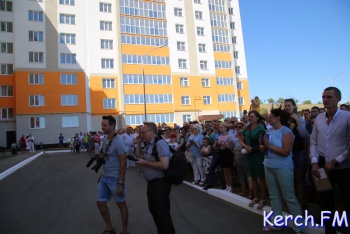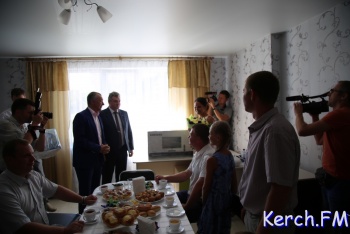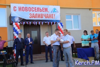 В Керчи продолжается церемония открытия нового дома для работников «Залива» на "Семи ветрах". После торжественной части у входа в дом, руководство города, министр и замдиректора завода пришли в гости к одной из семей. На новоселье власти подарили семье из Перми телевизор, пылесос и игрушки, - передает журналист Керчь.ФМ