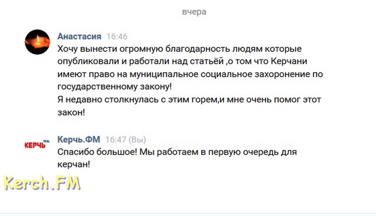 После публикаций на сайте ряда статей, связанных с правами по захоронению, керчане стал пользоваться соответствующей муниципальной услугой. В редакцию сайта Керчь.ФМ пришло сообщение с благодарностями за наш труд.