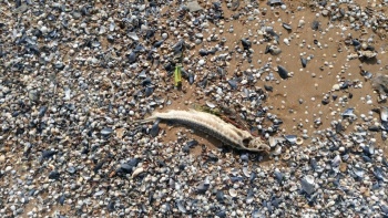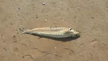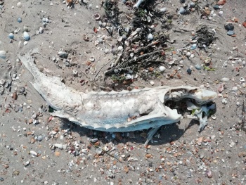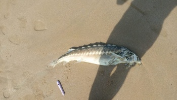 В районе от мыса Казантип до н.п. Щелкино сотрудники пограничной службы в Керчи выявили более 60 особей осетровых пород и два дельфина с признаками разложения. Разброс биоресурсов по береговой полосе составил около одного километра.