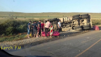 На Керченской трассе, между Виноградным и Ленинским, 15 августа произошла авария. На дороге перевернулся грузовик «Mercedes». Об этом РИА Крым сообщили в пресс-службе республиканского главка МЧС, - передает Керчь.ФМ