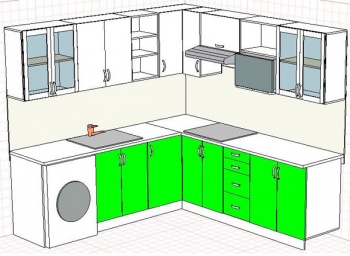 • Для начала Вам необходимо представить месторасположение рабочей зоны, бытовой техники, мест хранения посуды, продуктов, моющих средств и пр.