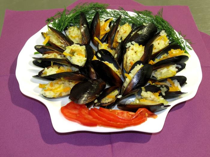 Пилав по-Керченски - свежайшие мидии в раковинах, приготовленные по классическому Керченскому рецепту. Мидии очень полезные, нежные на вкус, содержат большое количество белка (превосходят по количеству белка говядину и рыбу), низкокалорийны. Присутствие в мидии минеральных солей, железа, фосфора и витаминов делает их весьма полезными.