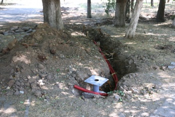 Также возле парковой зоны по улице Пошивальникова подрядная организация "Крым - Донбасс" ведет работы по обустройству парковки для автомобилей.