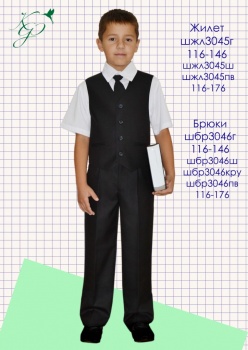 Для мальчиков - пиджаки, жилеты, брюки, сорочки, галстуки.