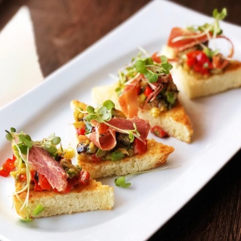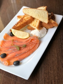 В кафе Bon Appetit Вы можете перекусить «тапасами с хамоном и овощным тартаром». Вашим завтраком могут стать «тосты со слабосоленым лососем и сливочным сыром». После рабочего дня на ужин можно заказать «запеченный сыр Бри на белом тосте с орехами и душистыми травами» с бокалом любимого виноградного напитка.