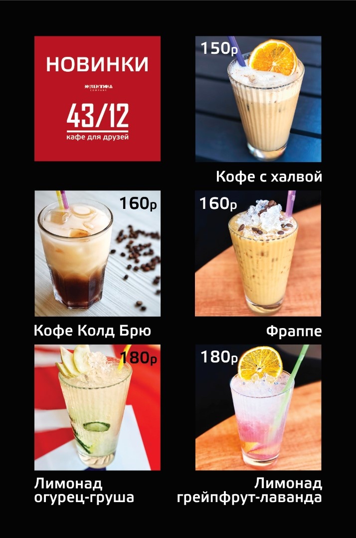 Жители Крымского полуострова отлично знают, что лето в Крыму - особенное. Сентябрь также можно заслуженно назвать летним месяцем, так как наступает пора бархатного сезона. «4 месяц лета» в кафе 43/12 встречают новинками - освежающие напитки с необычными сочетаниями.