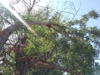 В Керчи сухая ветка повисла над дорогой и в любое время может упасть, - передает Керчь.ФМ.