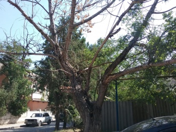 Как рассказали жители многоквартирного дома напротив высохшего дерева, они обратились в управляющую компания, но им отказали.