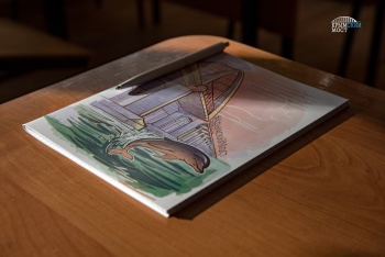 Сотрудники мостоотрядов подарили первоклассникам тематические тетради с изображением Крымского моста. На лицевой и обратной сторонах обложки представлены главные элементы новой транспортной артерии - судоходные арки, а также постоянные спутники стройки - чайки и дельфины.