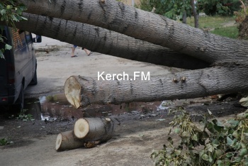 В Керчи 11 сентября в городе убирают последствия шторма, который повалил деревья и билборды. На улице Горького рабочие магазина пытаются самостоятельно спилить дерево, которое упало на магазин, - передает Керчь.ФМ