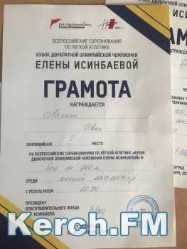 Воспитанник ДЮКФП Керчи Иван Ламеко (лицей искусств) стал двукратным победителем этих соревнований, обновив рекорды в беге на 100 м с результатом 11, 27 (120 участников) и на 200 м - 22, 90 (130 участников).