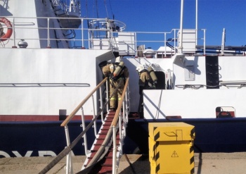 Личный состав пожарно-спасательной части в Керчи провели пожарно-тактические занятие по тушению условного пожара на судне. Об этом сообщает пресс-служба МЧС Крыма, - передает Керчь.ФМ