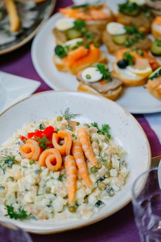 С момента открытия кафе «Вкус Жизни» разделило с Вами множество праздников и мероприятий. Опытная команда поможет грамотно составить меню с учетом Ваших предпочтений и количества приглашенных гостей. К вниманию заказчика будет представлено банкетное предложение с разнообразными блюдами на любой вкус. Канапе, различные закуски, горячие блюда в виде ассорти, авторские праздничные торты. Ваши гости будут в восторге!