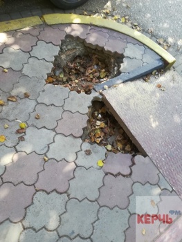В Керчи на ул. Дубинина в нескольких местах провалилась плитка, а также отсутствуют элементы ливневки. Глубина в местах провала достаточно большая, - передает Керчь.ФМ.