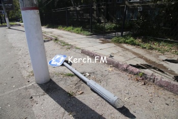 В Керчи 29 сентября на улице Гагарина произошла авария. Иномарка снесла дорожный знак и въехала в забор, - передает Керчь.ФМ
