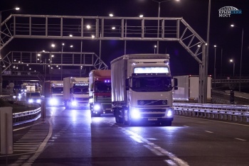 Более 2, 2 тысячи грузовых автомобилей проехали по Крымскому мосту за первые сутки после отмены ограничений на передвижение большегрузов. Об этом Крыминформу сообщили в пресс-службе оператора транспортного перехода - ФКУ «Упрдор «Тамань», - передает Керчь.ФМ