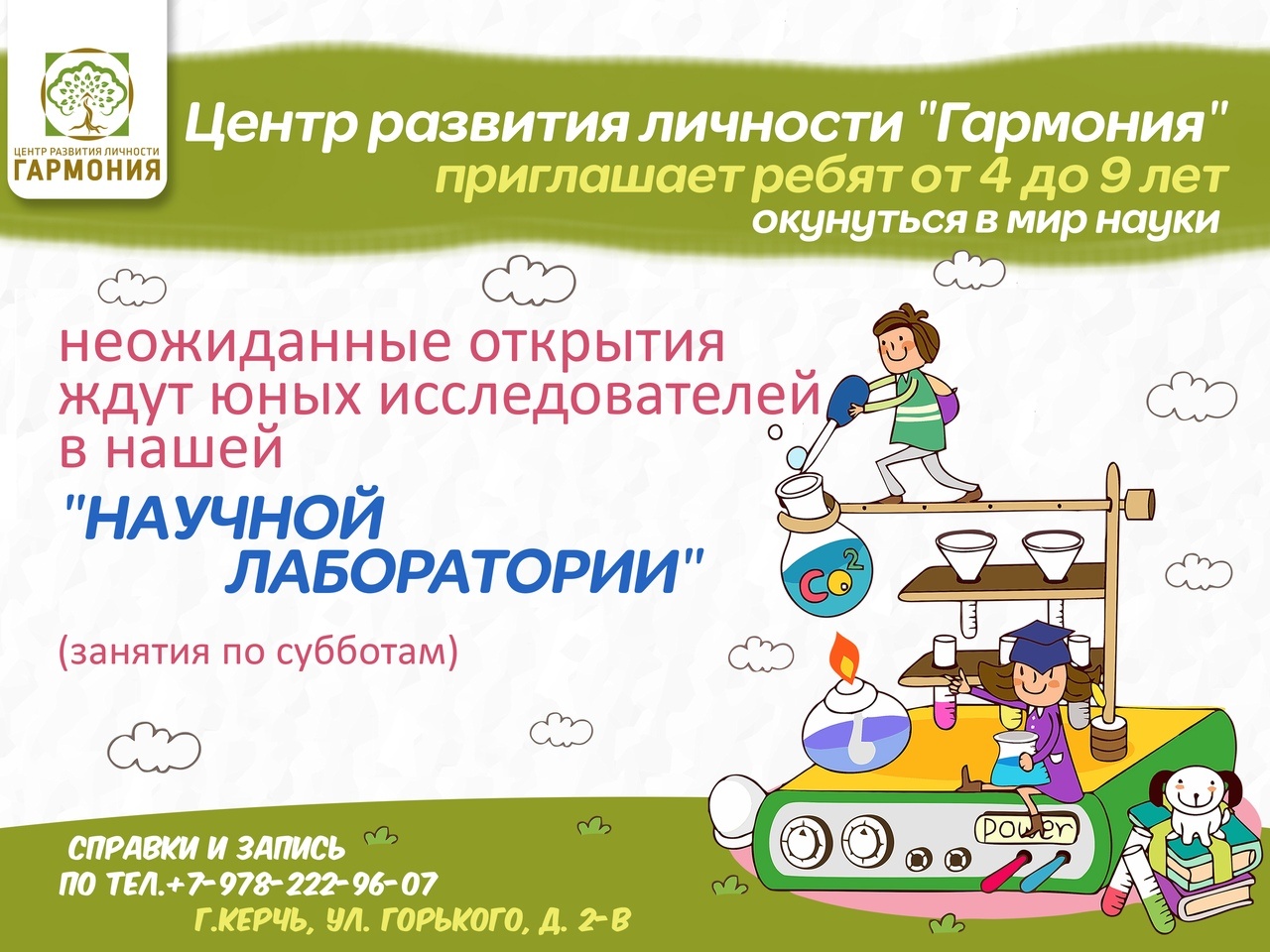 В детском Центре "Гармония" открывается НАУЧНАЯ ЛАБОРАТОРИЯ!!!