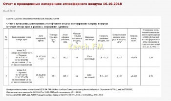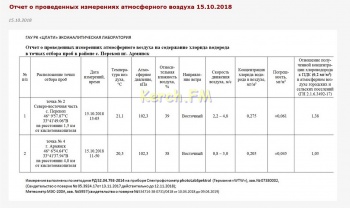 На сайте администрации города Армянск ежедневно вывешивается информация относительно исследований проб воздуха на содержание хлорида водорода. Так, из таблицы видно, что вчера наблюдалось повышение концентрации вредного вещества в воздухе в районе Перекопа по сравнению с пробами от 15 октября - 0, 317 мг/куб.м и 0, 275мг/куб.м соответственно.