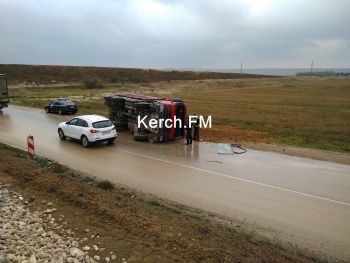 В Ленинском районе 24 октября, на трассе, перевернулся грузовик. Об этом сообщают очевидцы в соцсети, - передает Керчь.ФМ