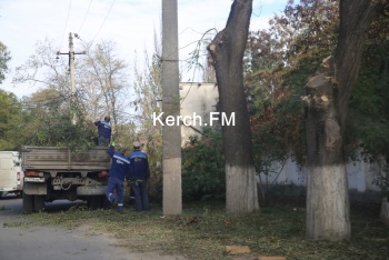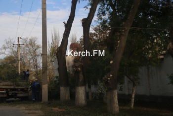 В Керчи 31 октября на улице Мирошника пилят аварийные деревья. Как передает корреспондент Керчь.ФМ, после обрезки стволы и ветки увозят.
