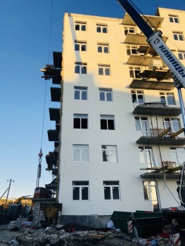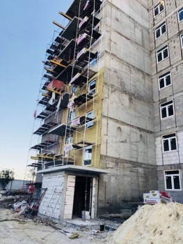 В Керчи строительство дома для депортированных граждан вышло на завершающий этап. Специалисты утепляют фасад, выполняют внутренние отделочные работы и остекление. Работы ведутся и в выходные дни.