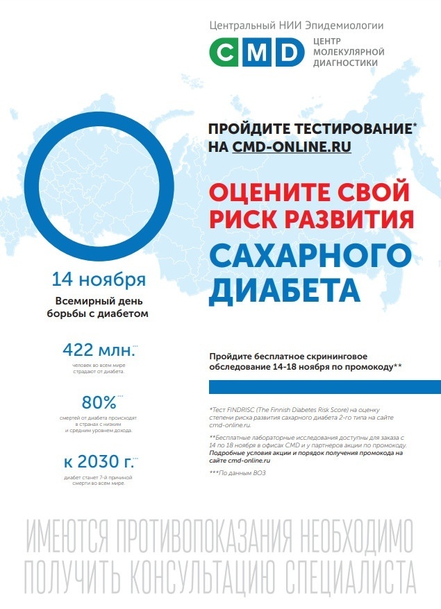 По этому промокоду Вы сможете сдать анализ в нашей лаборатории совершенно бесплатно с 14-18 ноября