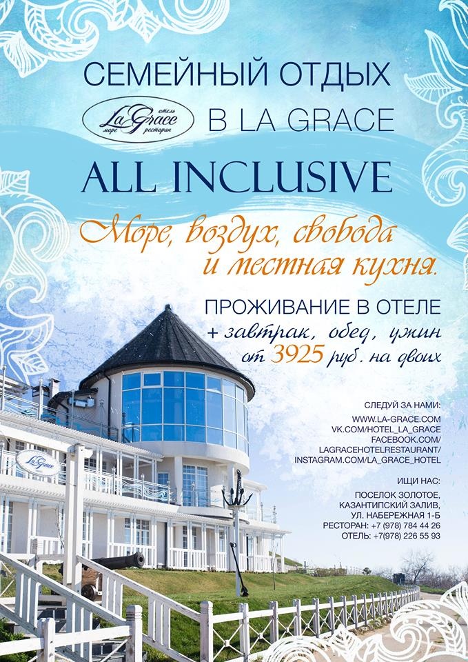 Не пропустите свой семейный отдых в La Grace по системе all inclusive: проживание в отеле + завтрак, обед и ужин от 3 925 руб. на двоих!