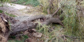В Керчи 21 ноября, на ул. Шахматная упало большое старое дерево на дорогу и перегородило полностью проезд. Как передает корреспондент Керчь.ФМ, эта дорога - спуск к лодочным гаражам. С утра водители не могут покинуть «ловушку» из-за того, что это единственная автомобильная дорога к морю.