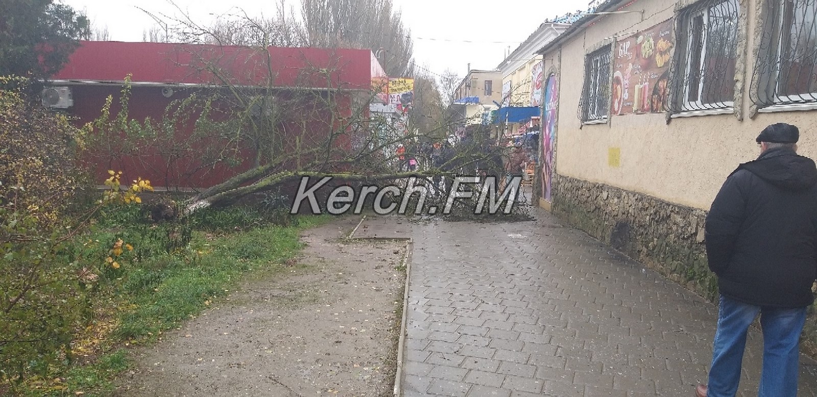 Дерево упало на пешеходную дорожку в Керчи