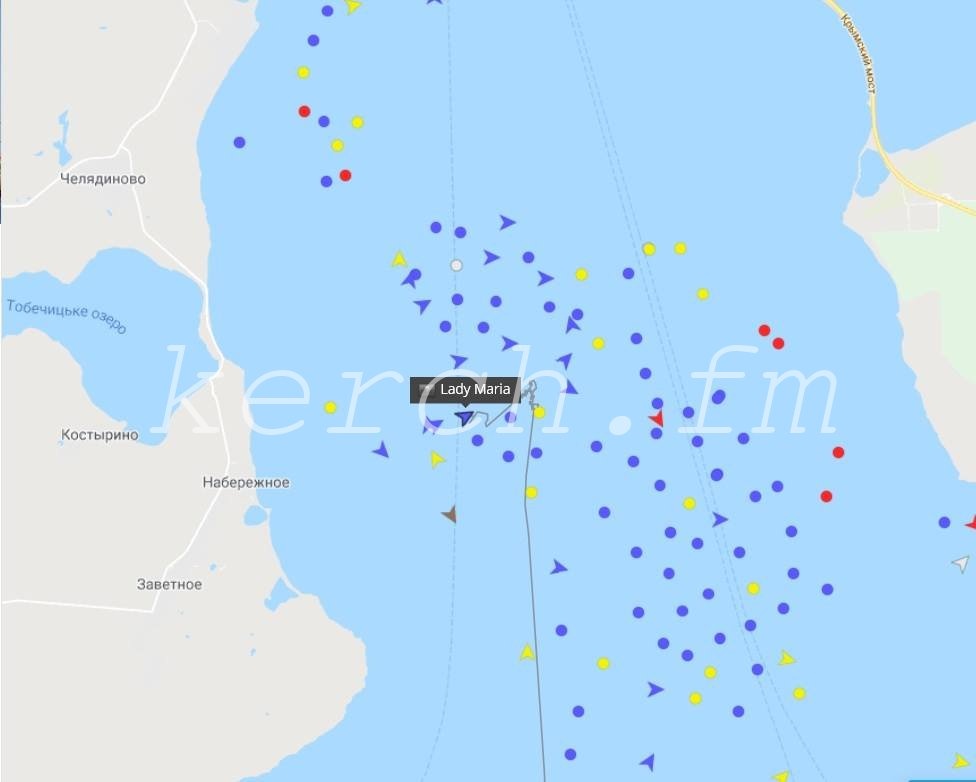 "Грузовой корабль "Lady Maria" во время маневрирования в Керченском проливе столкнулся с грузовым судном "Azov Concord". Оба корабля направлялись из порта Констанца в Румынии в азовские морские порты России и Украины, оба ждали разрешения на транзит через пролив", - говорится в сообщении.