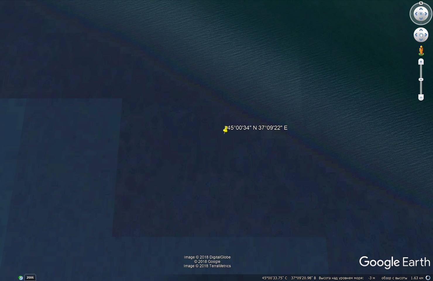 Глубина, на которой стоит "Azov Concord" по информации Google Earth