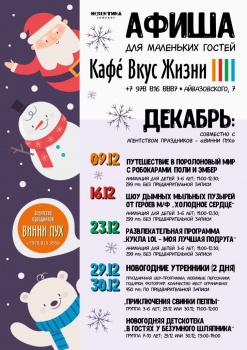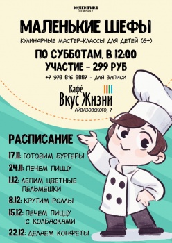 13.12, четверг: кулинарный мастер-класс от бренд-шефа - «Закуски из местной рыбы» (19:00; участие - 890 руб).