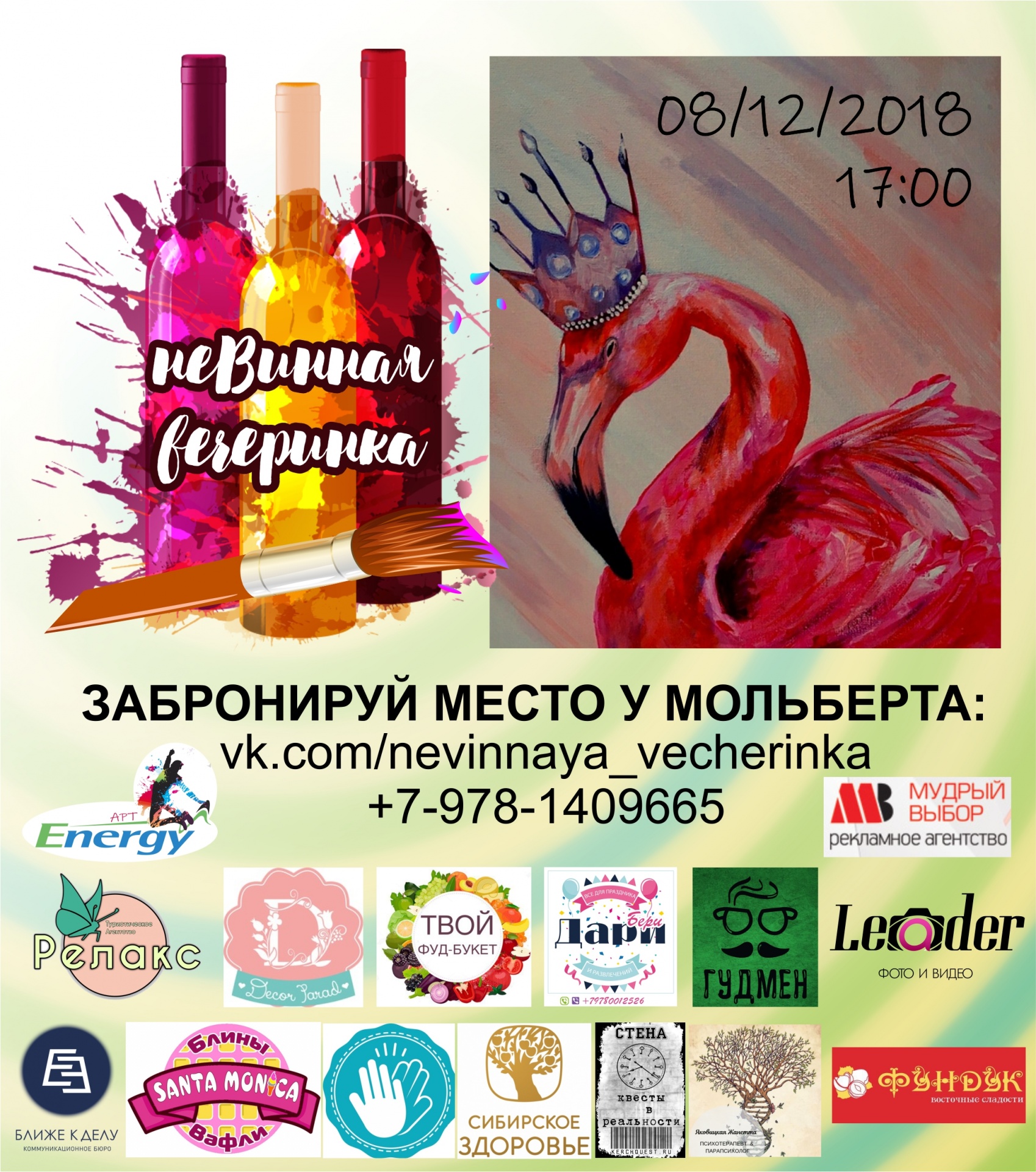 Интересно? Тогда скорее бронируй место у мольберта по телефону +79781409665 или вступай в группу в ВК « неВинная вечеринка» - https://vk.com/nevinnaya_vecherinka