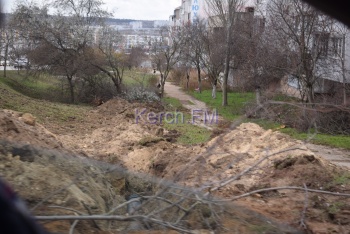 На Блюхера уже несколько дней подряд от дома для депортированных прокладывают канализационный коллектор. По пути производства работ выкопали деревья, - передает Керчь.ФМ.