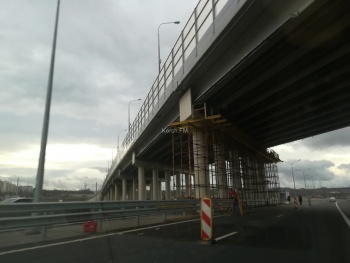 В Керчи вокруг опор путепровода по шоссе Героев Сталинграда, которые находятся как раз посередине, поставили строительные леса, - передает Керчь.ФМ.