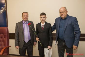 Глава муниципального образования Керчи Николай Гусаков и председатель Территориальной избирательной комиссии города Святослав Брусаков вручил паспорта пятерым подросткам.