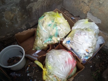 «В Керчи предприимчивые сотрудники больницы №1 чтобы не оформлять паспорт опасных отходов, просто выставляют их на улицу. Отработанные шприцы медикаменты и т.п. По близости находится частный сектор ходят по этой улице дети, в непосредственной близости находится учебное заведение. Как такое можно было допустить?!», - написали керчане