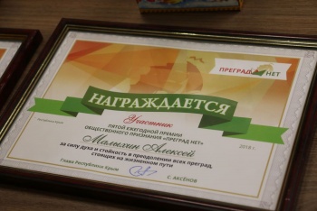 В Крыму прошло торжественное вручение дипломов победителям ежегодного конкурса на соискание премии общественного признания «Преград нет». Конкурс способствует творческой, спортивной и интеллектуальной самореализации детей с ограниченными возможностями здоровья, - передает Керчь.ФМ.