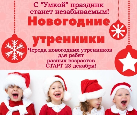 Центр развития ребенка «Умка» и кинотеатр «Украина» с радостью объявляет сезон новогодних утренников открытым! Совсем скоро наши дома наполнятся запахом ели или сосны, двери будут украшены струящимся дождиком, а сердца наполнятся светлым и долгожданным - чувством ожидания ЧУДА!