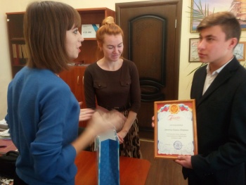 Коллектив Министерства имущественных и земельных отношений Крыма торжественно вручил на День Святого Николая обучающему 9-го класса школы-интерната Кириллу Заиченко награду от имени Главы Республики Крым как участнику пятой ежегодной премии общественного признания «Преград нет».