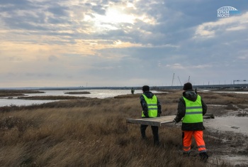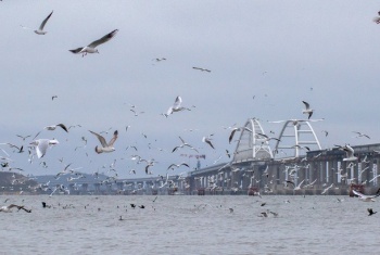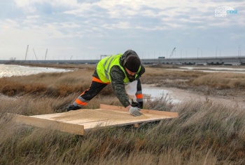 Для птиц, зимующих в районе Крымского моста, установлены кормовые столы с полезными злаками. Их разместили в местах скопления птичьих стай - у мелководных водоемов на острове Тузла и озера у Тузлинской косы. Зимняя подкормка пернатых - один из этапов экопрограммы проекта моста.