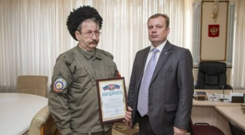 Также Гусаков вручил благодарность главы Зайцевской поселковой администрации Горловки ДНР Атаману Керченского Союза Казаков, казачьего Полковника Александру Самойлову.