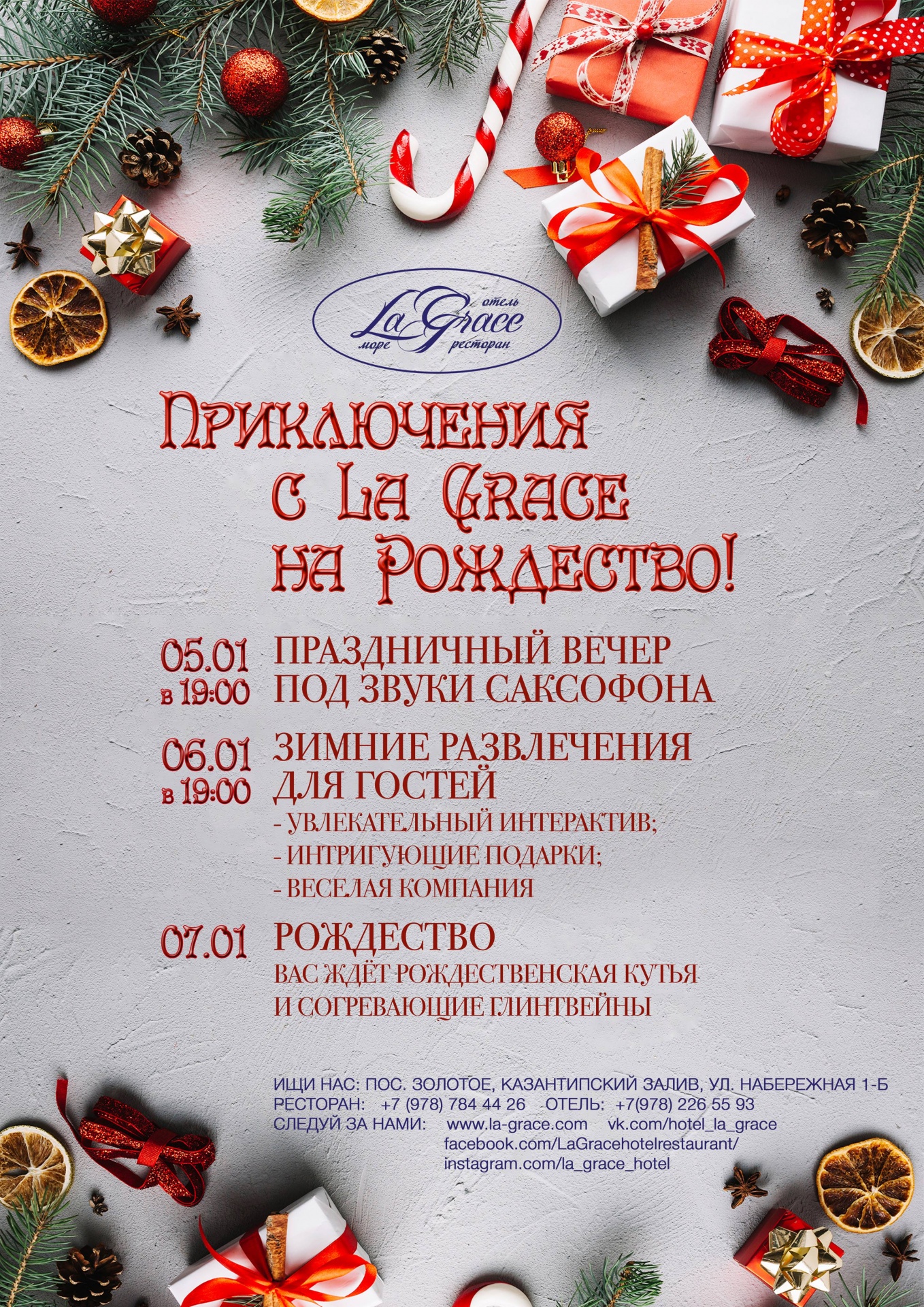 С наступлением зимних каникул начинаются новогодние приключения, развлечения, забавы. На рождественские каникулы в La Grace вас ждёт: