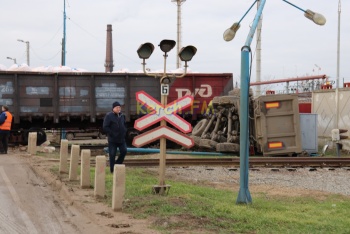 Стоит отметить, что этим жд переездом пользуются очень редко, но при маневренных работах в порту семафор постоянно загорается, поэтому иногда выходит сотрудник терминала и показывает водителям. Что поезд идти не будет.
