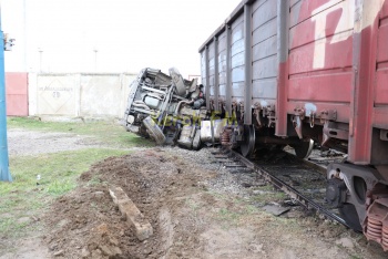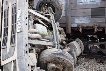 Вчера в 22:30 вагон с содой, следующий по переезду к «С Терминалу» снес кабину самосвалу. Только чудом не пострадал водитель длинномера, - предает Керчь.ФМ.